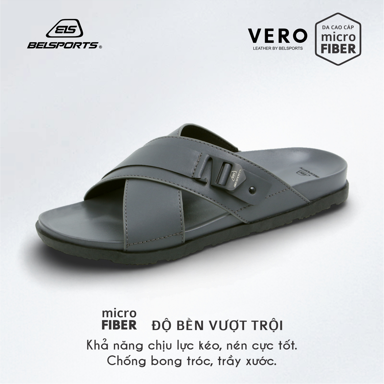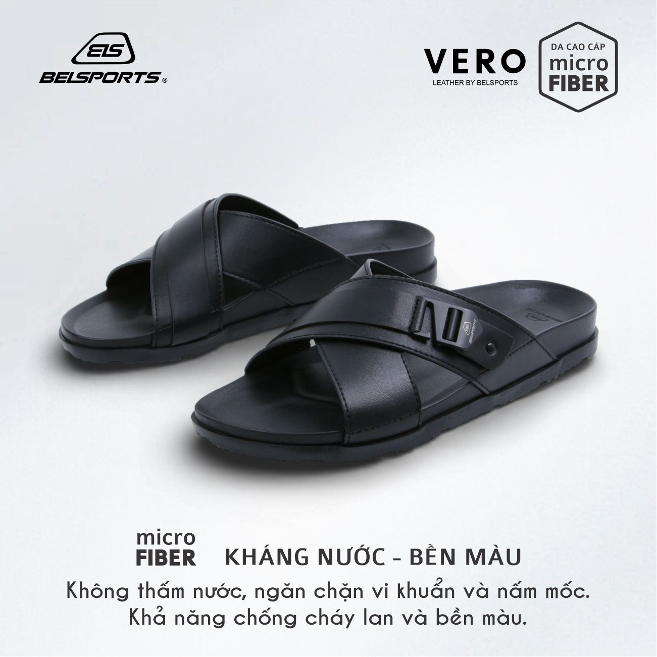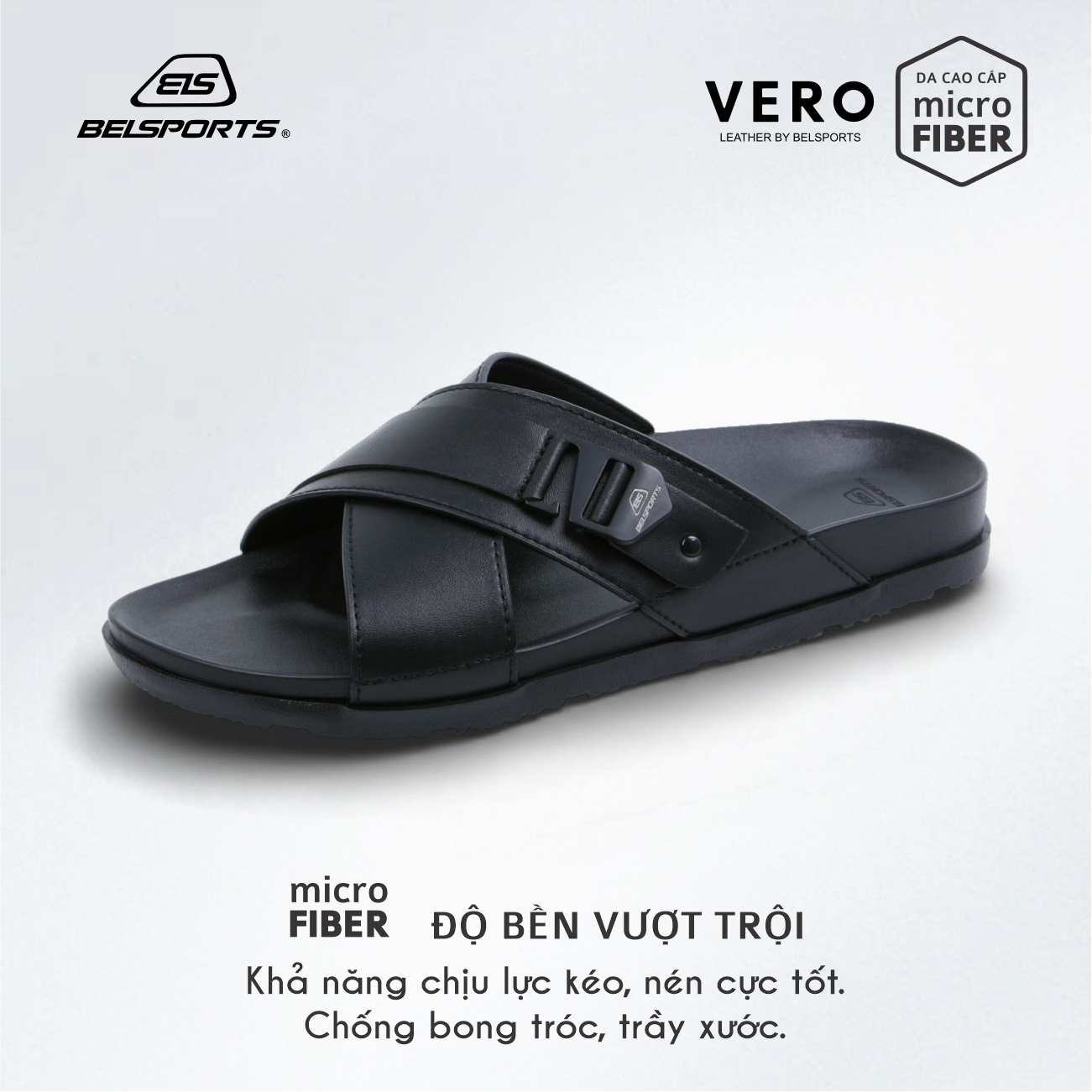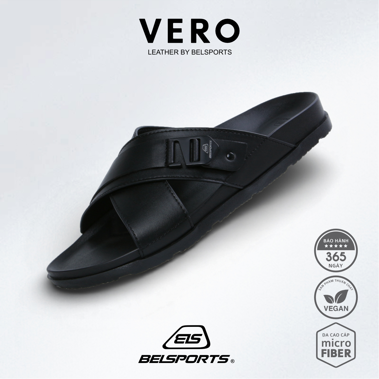 Dép Da Microfiber BELSPORTS Cao Cấp Vero VC01 – Quai Bản Ôm Chân, Đế PU Công Thái Học, TPR Chống Trượt