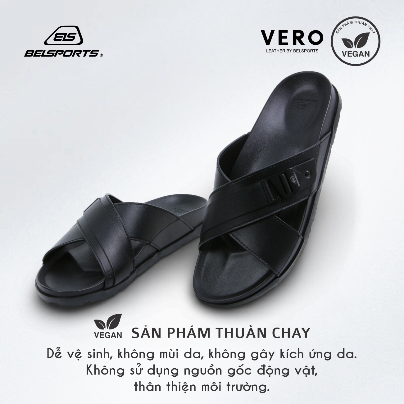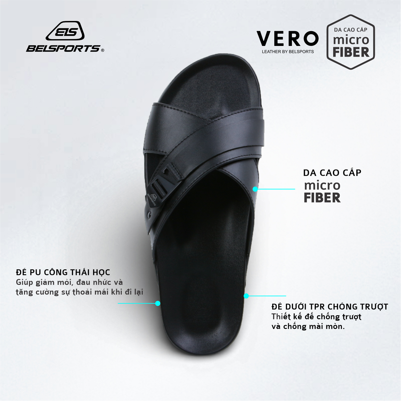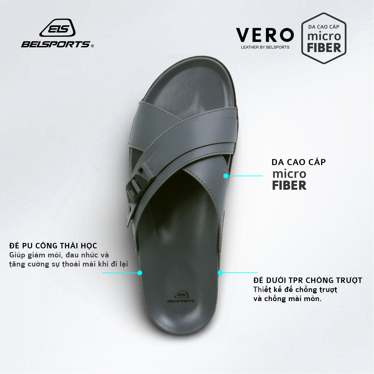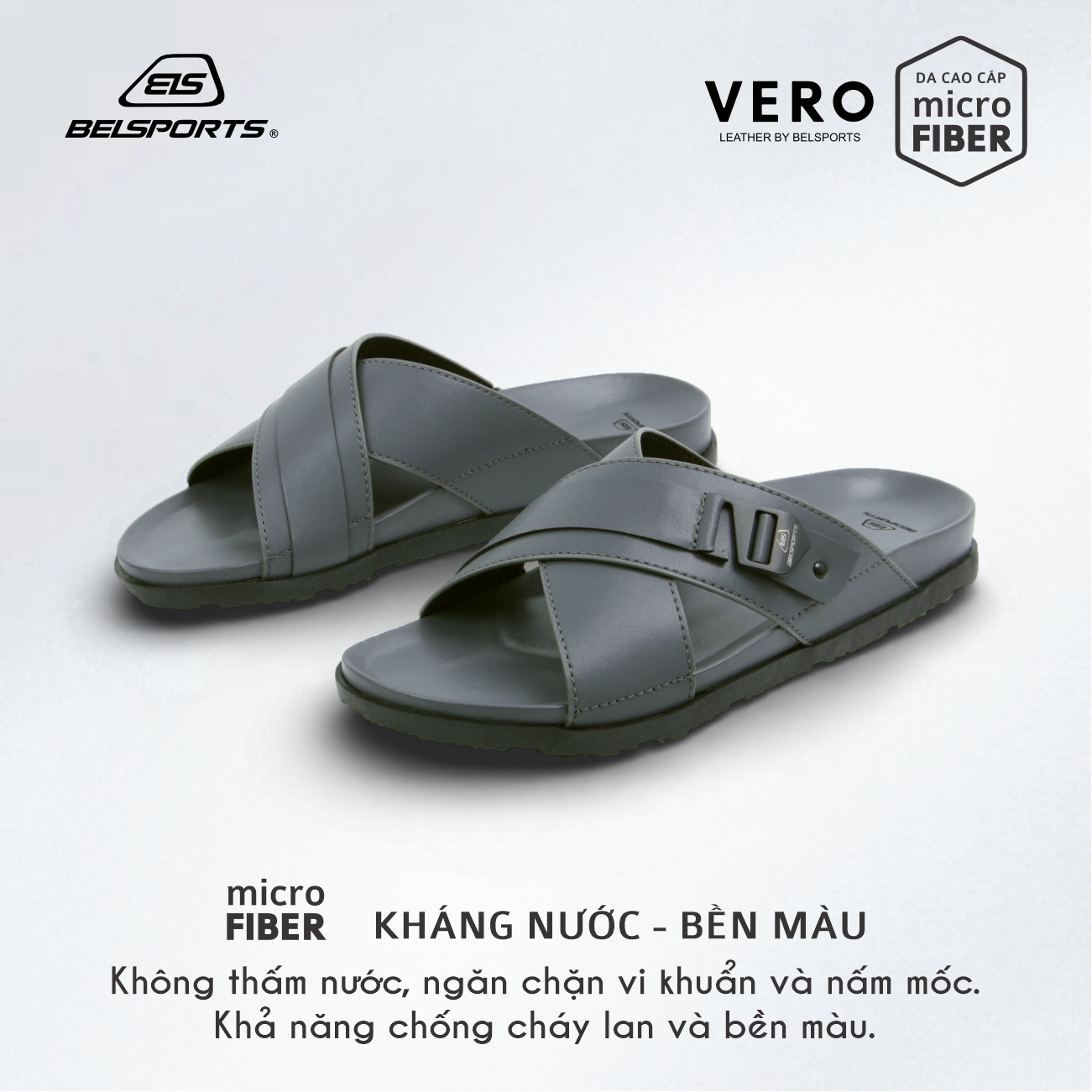Dép Da Microfiber BELSPORTS Cao Cấp Vero VC01 – Quai Bản Ôm Chân, Đế PU Công Thái Học, TPR Chống Trượt