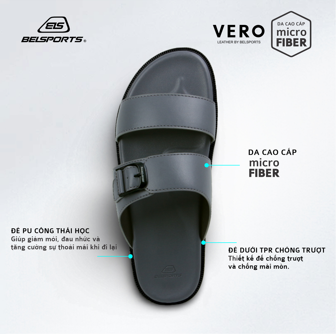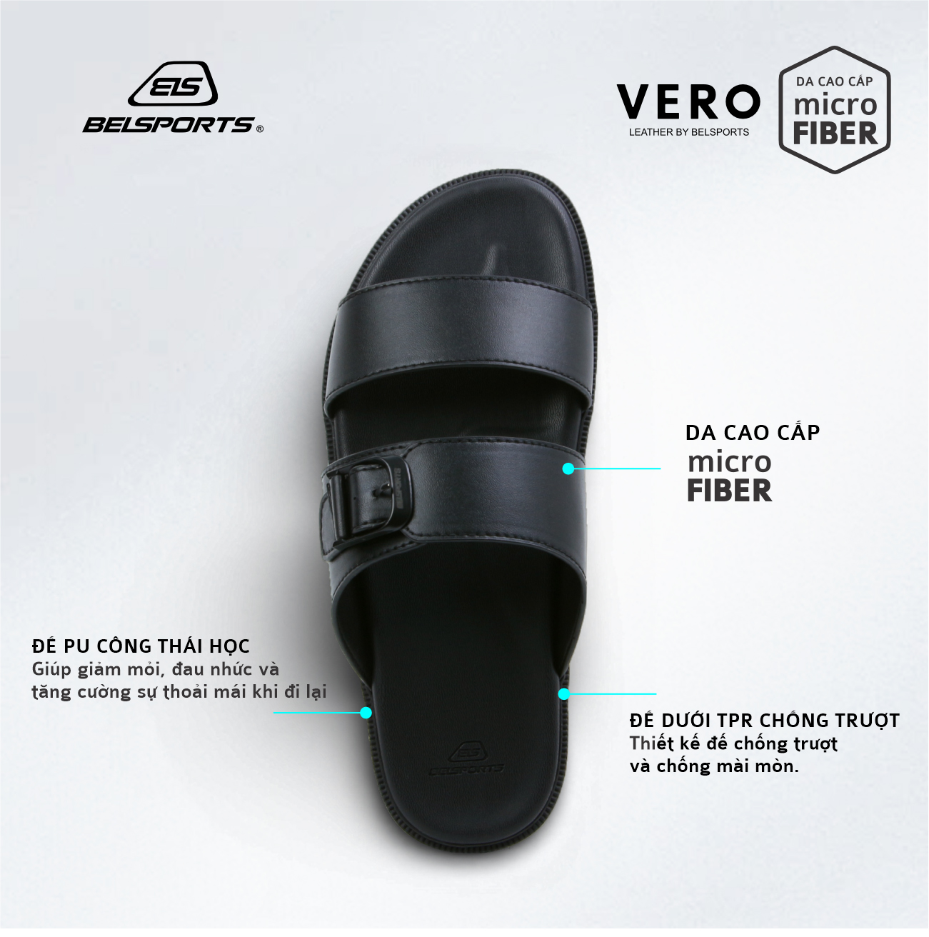 Dép Da Microfiber BELSPORTS Cao Cấp Vero VK01 – Quai Bản Ôm Chân, Đế PU Công Thái Học, TPR Chống Trượt